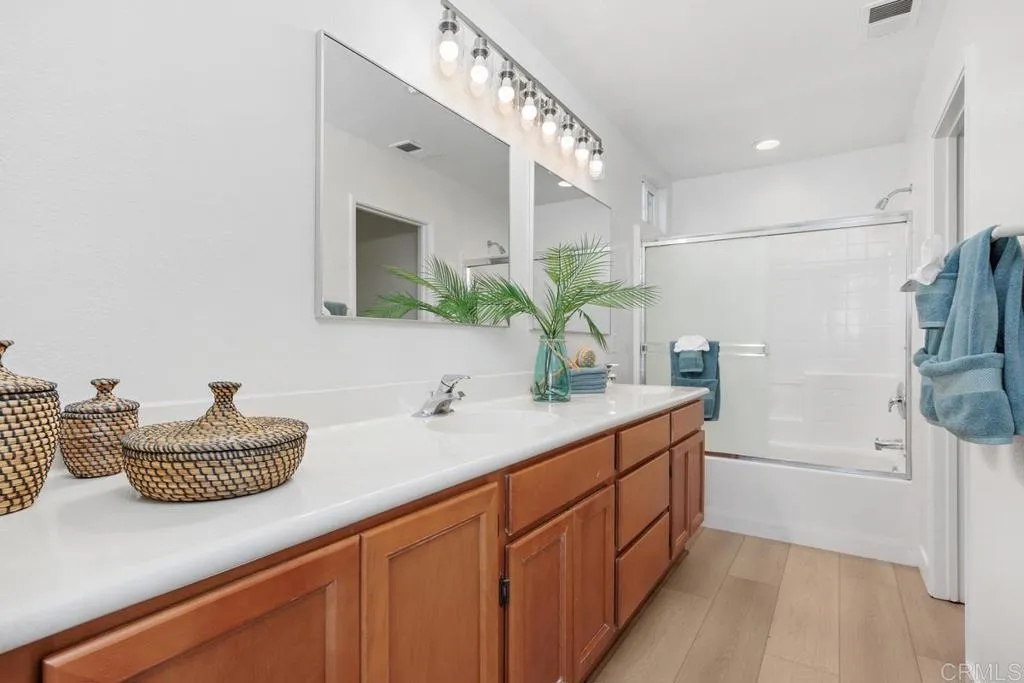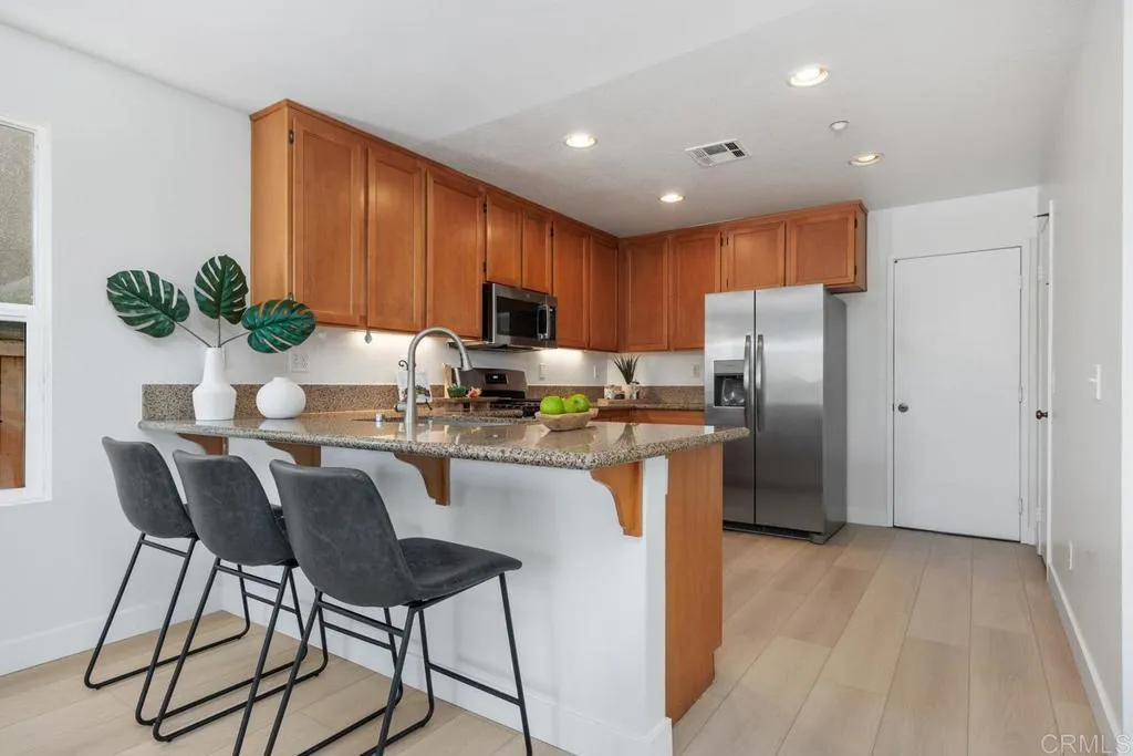 Welcome to the highly desirable, gated Moncado Springs community. This beautifully updated 4-bedroom, 2.5-bath home is filled with natural light and offers a truly move-in-ready experience. The main level features new LVP flooring and brand-new stainless-steel appliances, while the upstairs boasts brand-new carpet and fresh paint throughout. The secondary bathroom has been refreshed with a new vanity, mirror, and lighting, adding a modern touch. Step outside to a landscaped backyard designed for relaxation, entertaining, and enjoying the Southern California lifestyle. Residents of Moncado Springs enjoy resort-style amenities, including a sparkling pool, relaxing hot tub, children's playground, welcoming clubhouses, and scenic hiking trails. Centrally located just minutes from Downtown Vista's vibrant dining scene, shopping, movie theaters, and with easy access to major highways, this home places everything you need right at your fingertips. If you're searching for a beautiful move-in-ready home in one of Vista's most sought-after communities, this is the one. Welcome home!