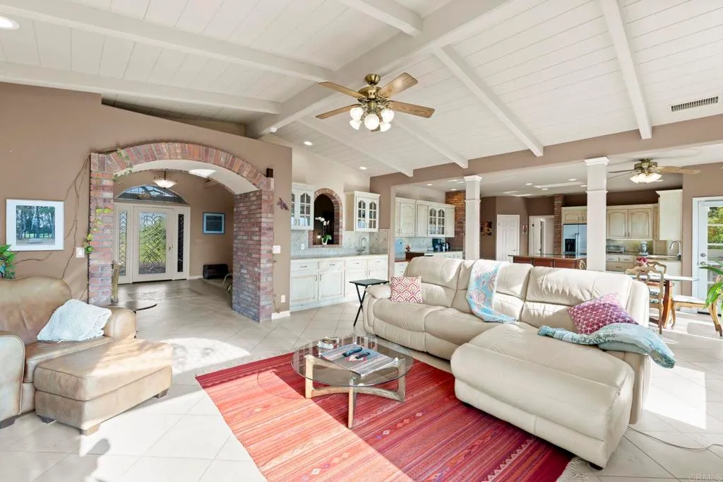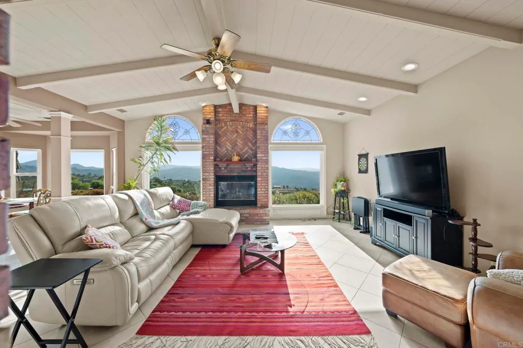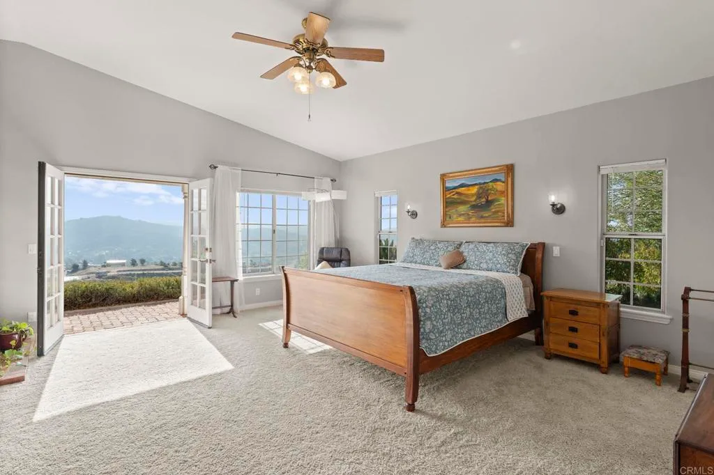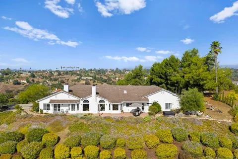 GREAT NEW PRICE!!! *** TRANQUIL, RIDGE-TOP CUSTOM-BUILT HOME with unparalleled panoramic sunrise AND sunset views from nearly every room in the house. Majestic rolling hills and Palomar Mountain to the east and then there's sweeping views of rolling hills and the Sleeping Indian mountain formation to the west, bringing in the gentle ocean breeze. From the moment you ascend the long elegant driveway you'll feel transported to your very own top-of-the-world private retreat. The views from this home are absolutely breathtaking and a MUST SEE! The gorgeous beveled-glass front door welcomes you into this expansive 4-bedroom home boasting beautiful high beam ceilings, as well as, an additional separate office/guest unit with its own entrance and kitchenette. This spacious home is ideal for entertaining with the generously sized kitchen alongside the welcoming family room, all of which flow gently into the formal dining and living rooms. Plus there's a great perk with having fully-owned solar, TWO walk-in closets in the primary suite, spacious kitchen with walk-in pantry, induction oven, high ceilings, raised garden beds, lime and lemon trees, a gazebo perfect to enjoy the morning or even the afternoon views. With well over 2 acres of land, the possibilities are endless - you could possibly have your own avocado grove, swimming pool, ADU, workshop or just leave it the way it is and enjoy this magnificent property located just minutes to the 76 yet it feels like it's in another world - peaceful and serene. This is a MUST SEE home.