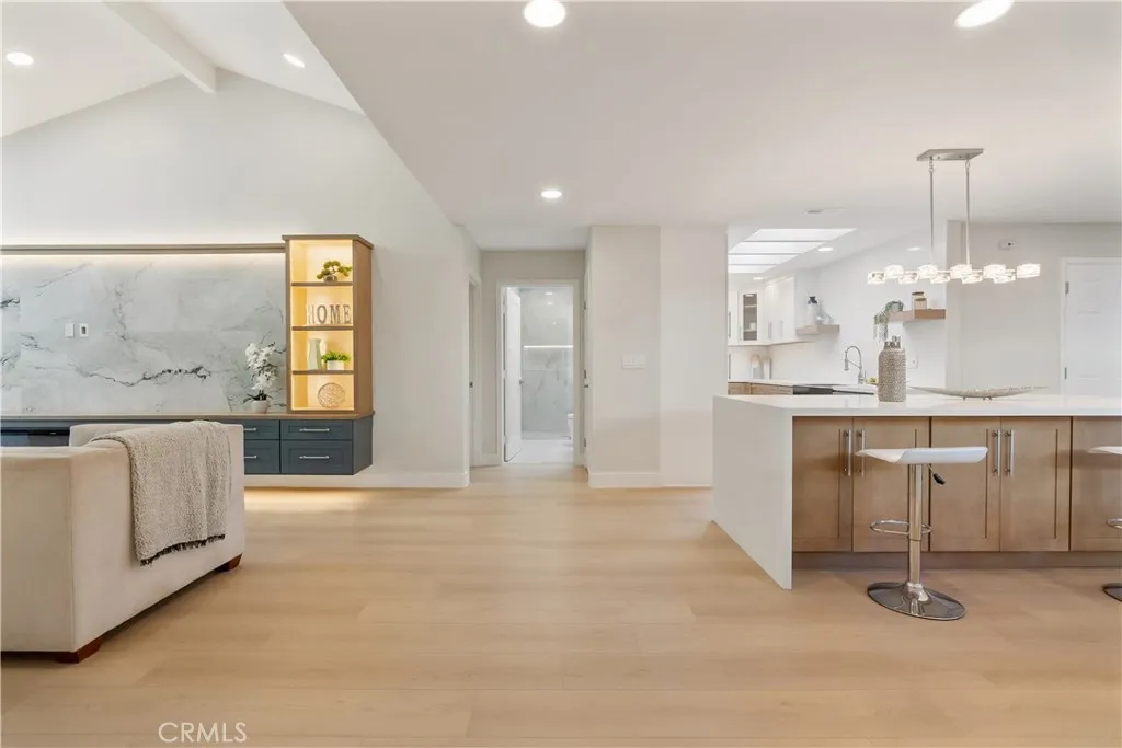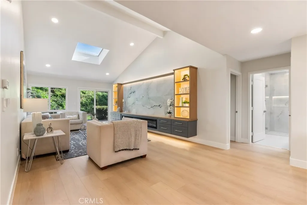 Discover this stunning, expanded, and beautifully remodeled Navarro model. Nestled in a quiet cul de sac close to Barbara Lake. The popular floorplan features two spacious Primary bedrooms and a generous central living room, perfect for relaxing or entertaining guests. The impressive curb appeal is complemented by meticulously landscaped entry area with custom lighting and an impressive modern glass and wood front door that welcomes you and your visitors. Completely renovated with high end finishes, appliances, fixtures and a beautiful new room addition of over 300 square feet. This versatile bonus room off the dining area offers additional space to serve as a TV lounge, den, or home office. The central living room with high ceilings showcases a beautiful wood and marble media wall with custom lighting, electric fireplace and abundant storage. The thoughtfully designed chef's kitchen is a culinary delight, with abundant cabinet and counter space, upgraded appliances, quartz countertops and waterfall island. Both bathrooms exude luxury with custom wood cabinetry, quartz counters, and walk-in showers featuring frameless doors, linear drains, and convenient shelves. Find out why Laguna Woods Village is one of the best retirement communities in CA. Residents Enjoy the 27-hole championship golf course and the 9-hole executive par three course, tennis, pickleball, paddle tennis, lawn bowling, two fitness centers, seven clubhouses, five swimming pools, an equestrian center, gardening areas, an art studio, a world-class woodshop, and more than 200 clubs and organizations. There is a community bus service to nearby shopping, RV storage area, club sponsored live entertainment, and you are less than 7 miles from beautiful Laguna Beach. Country club living at its best and the best hidden secret in Orange County.