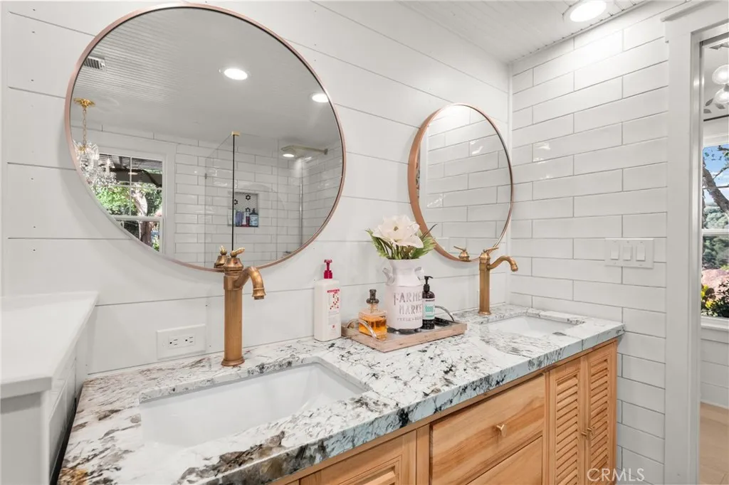 Nestled on an elevated 2.29-acre lot in a prime Fallbrook location, this picture-perfect country retreat is a rare blend of elegance, thoughtful design, tranquility, and natural beauty. This one-of-a-kind estate features a beautifully upgraded two-story Craftsman-style home paired with a separate, fully appointed guest house - ideal for multi-generational living or hosting extended stays. Step inside the main residence and you're immediately welcomed by an open-concept formal living and dining space, filled with natural light, custom cabinetry, and a cozy wood-burning fireplace. The heart of the home is the chef's dream kitchen - boasting a professional-grade 6-burner stove, sleek white cabinetry, granite countertops, an oversized island, and a spacious separate walk-in pantry. The main-level primary suite offers the perfect private retreat, featuring private patio access, a spa-inspired bathroom with a freestanding soaking tub, dual vanities, a large walk-in shower, and generous closet space. Upstairs, an airy loft provides flexible living or office space, along with two generously sized bedrooms - each with ample closet space, large windows, ceiling fans, and two beautifully appointed bathrooms. The separate guest home offers complete independence with its own full kitchen, living and dining area, bedroom, and bathroom - perfect for extended family, guests, or rental opportunities. Outdoors, the grounds are simply spectacular: mature trees, a hobby orchard including orange, apple, grapefruit, avocados, mango, fig, pears, plumb trees, manicured gardens, expansive lawns, and breathtaking views. Whether you're entertaining, gardening, or simply enjoying the peaceful surroundings, this property offers a lifestyle that is truly unmatched. Additional highlights include fully owned solar and power-walls for a true "off grid" style property along with thoughtful upgrades throughout. This is more than just a home - it's an experience. Pictures can only hint at the magic of this property; the true experience comes from walking the grounds and feeling the unique presence it has to offer. Don't miss the chance to own one of Fallbrook's most remarkable homes.