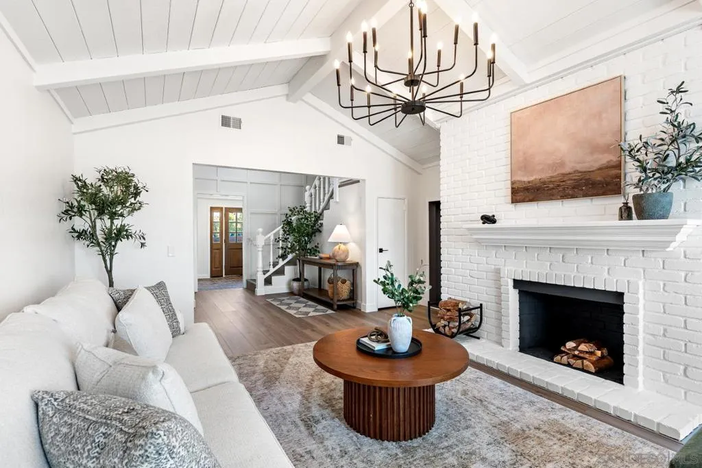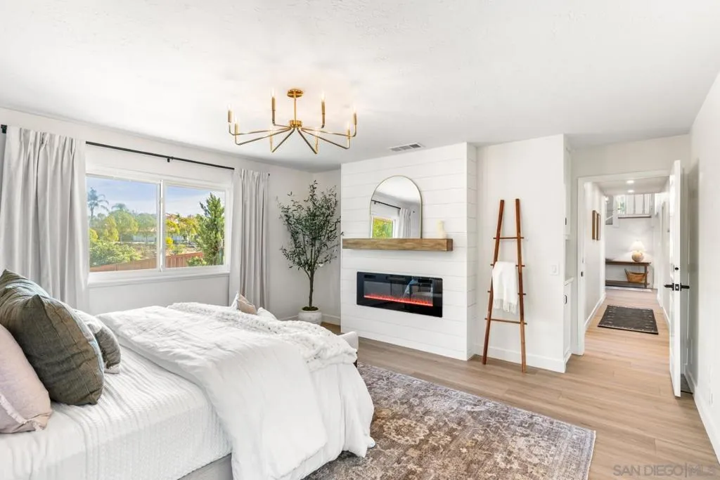 4141 Palomar Drive is a beautifully refreshed 5-bedroom, 3-bath, 3,000 sq. ft. home on 1.18 private acres, offering modern comfort, privacy, and refined Fallbrook living. Set behind a gated entry and surrounded by mature landscaping, the home enjoys peaceful views and the quiet charm the area is known for. Renovated in 2025 with updated finishes, new lighting, and designer touches, it blends warmth with a clean, elevated aesthetic. All five bedrooms are conveniently located on the main level - ideal for families, guests, or multigenerational living. The entry and living room feature soaring ceilings and abundant natural light, while a dedicated home theater enhances entertainment options. Upstairs, the kitchen boasts quartz countertops, an expansive island, walk-in pantry, and high-end Caf appliances including a 6-burner range, flowing effortlessly into the dining and family areas. The primary suite offers a peaceful, retreat-like setting with spa-style finishes. Outdoors, the property is a destination featuring RV parking with hookups, space for a possible ADU, a scenic balcony, a large view deck, and a resort-style pool with spa and waterslide. The land includes a hobby vineyard with Sangiovese and Merlot vines, plus producing avocado and citrus trees. A detached building provides additional space for a workshop, gym, studio, or storage. Located minutes from Fallbrook's village, schools, wineries, golf, and hiking, this property offers space, lifestyle, and exceptional privacy.