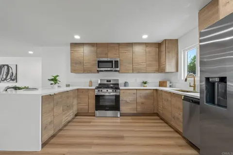 Welcome to your dream home! Completely renovated from top to bottom, this stunning 3-bedroom, 2-bath beauty is move-in ready and sure to impress. Step inside to discover brand new vinyl plank flooring, baseboards, new doors, door casings, and closet doors - every detail thoughtfully updated. The heart of the home features a sleek European-style kitchen with modern cabinetry, quartz countertops, a waterfall peninsula, and all-new stainless steel appliances. Both bathrooms have been fully remodeled with gorgeous modern finishes. Enjoy two spacious living rooms, perfect for entertaining or relaxing, and a private backyard with fresh fencing - ideal for outdoor entertaining. Additional upgrades include a new roof, new dual-pane windows, a new garage door, and updated light fixtures throughout. Situated on a peaceful street in charming Fallbrook, this home has it all - style, space, and comfort. Don't miss your chance - this one won't last long!